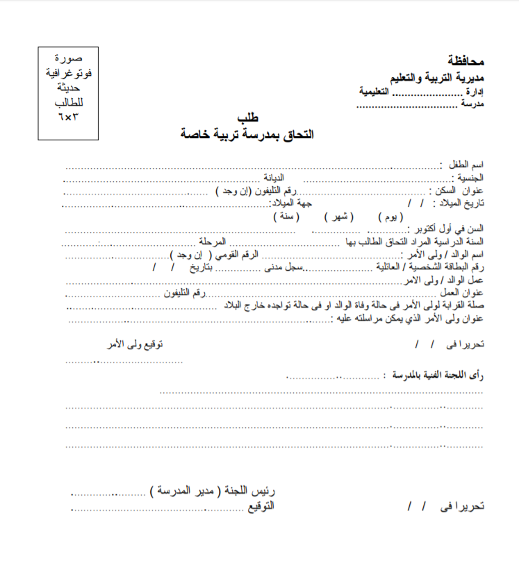 نموذج طلب الالتحاق بمدرسة تربية خاصة للعام 2019 تحميل الملف للطباعه