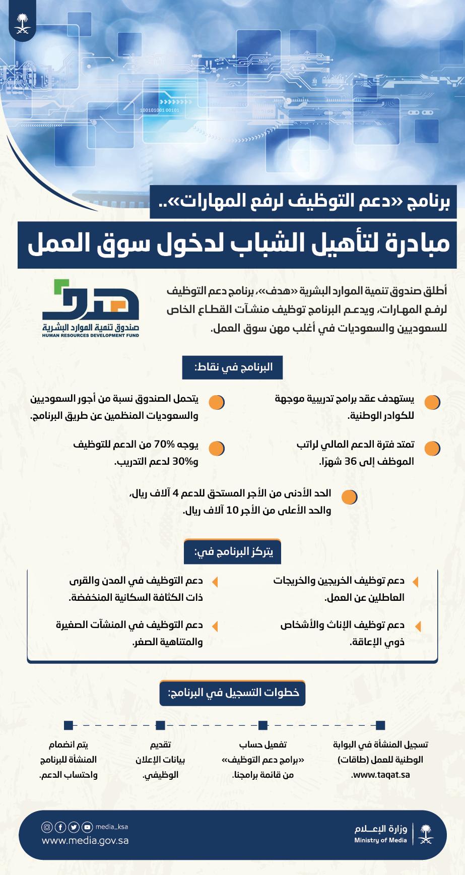 وزارة الإعلام No Twitter انفوجرافيك برنامج دعم التوظيف لرفع المهارات مبادرة لتأهيل الشباب للدخول في سوق العمل