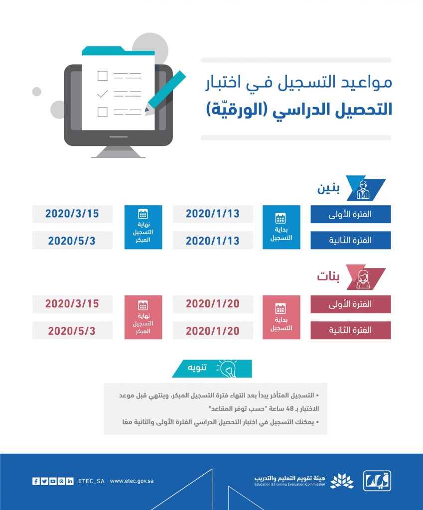 رابط قياس E Services Qiyas Sa للتسجيل في الاختبار التحصيلي الورقي للطلاب والطالبات مواعيد الفترات