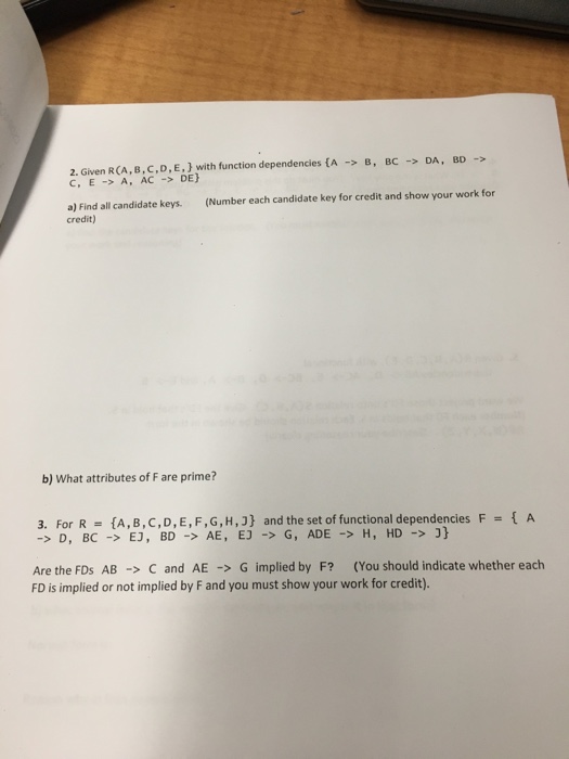 Solved Given R A B C D E With Unction Dependence Chegg Com