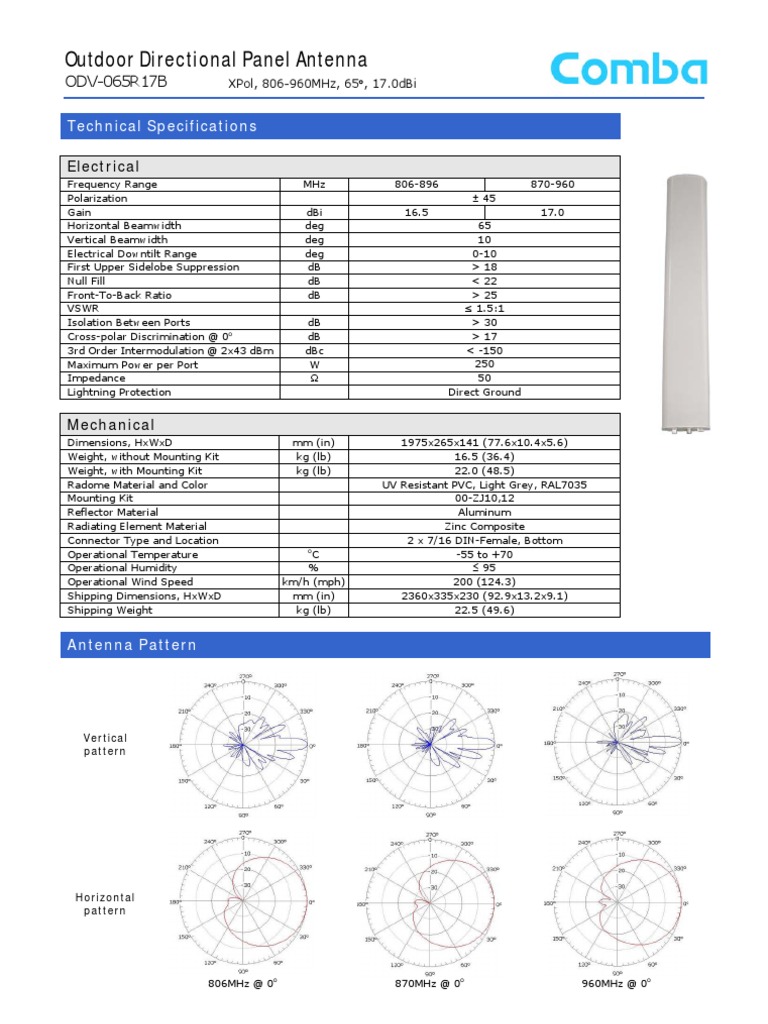 Antena Comba La 22 Odv 065r18ek G Ds 0 T 0 2 5 Mts Db Datasheet