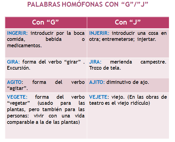 Homofonos Entre G Y J Dispensario Ortografico
