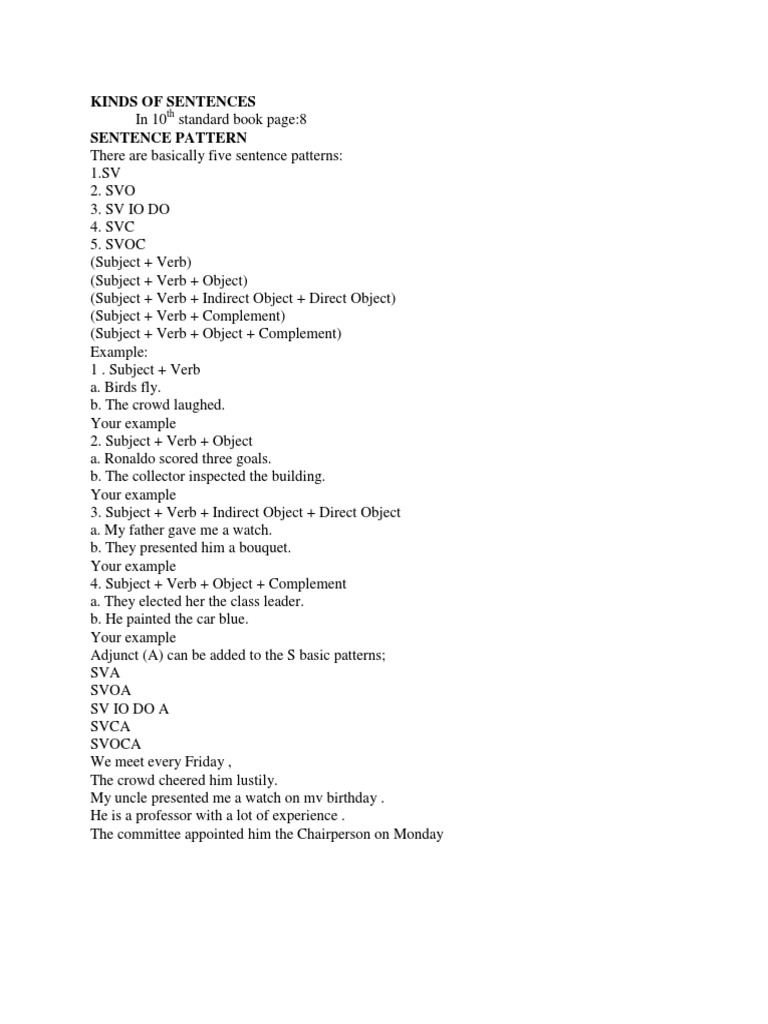 Tamilnadu Board Class 10 English Grammar Sentence Pattern Learn Cram